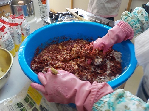 今年も地域の旬のお野菜、白菜・大根を使っておいしいキムチ作りをします。