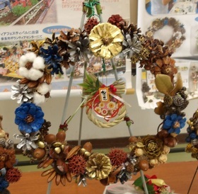 その藤づるを使って、天然素材を材料に飾り付けた世界にたったひとつのオリジナルなリースを作ります。