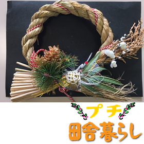 しめ縄にまつわる文化を学び、リースタイプのしめ縄を作ります。