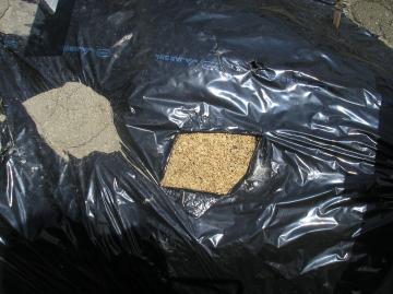 今回は、草取りをして畝からマルチをはがします。更に2回目の追肥を施し、中耕・土寄せを行います。