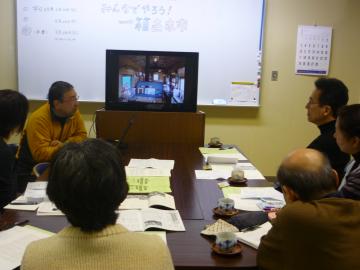 まず初回は、一箱古本市の開催経験が豊富な「大門玉手箱」のメンバーを講師に招き、どのようなイベントなのか映像を交えて学習しました。
