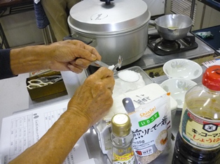 塩・砂糖・醤油等をきちんと計ることの大切さや、バランスのとれた料理を作ることで、これからも健康で生き生きとした生活を送るための料理メニューについても学びました。