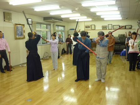 足の動き、手(袋竹刀)の動きが、頭ではわかっていても、一連の流れになるとなかなかスムーズにいかず、皆さん四苦八苦されていました。