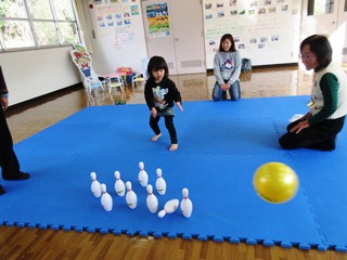 真剣にボーリングをしています。