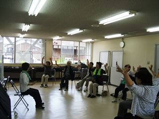お話ばかりでなく、簡単な体操やマッサージも行いました。