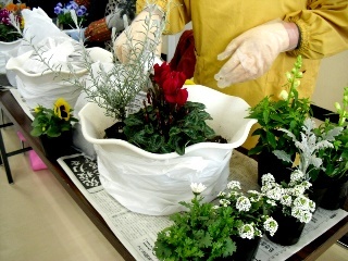 今年最後の体験セミナーは、正月用の寄せ植えです。