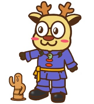 「げ」の横の窓わくが空いたので、奈良市生涯学習財団のキャラクター「しか丸」くんの絵を貼りました。