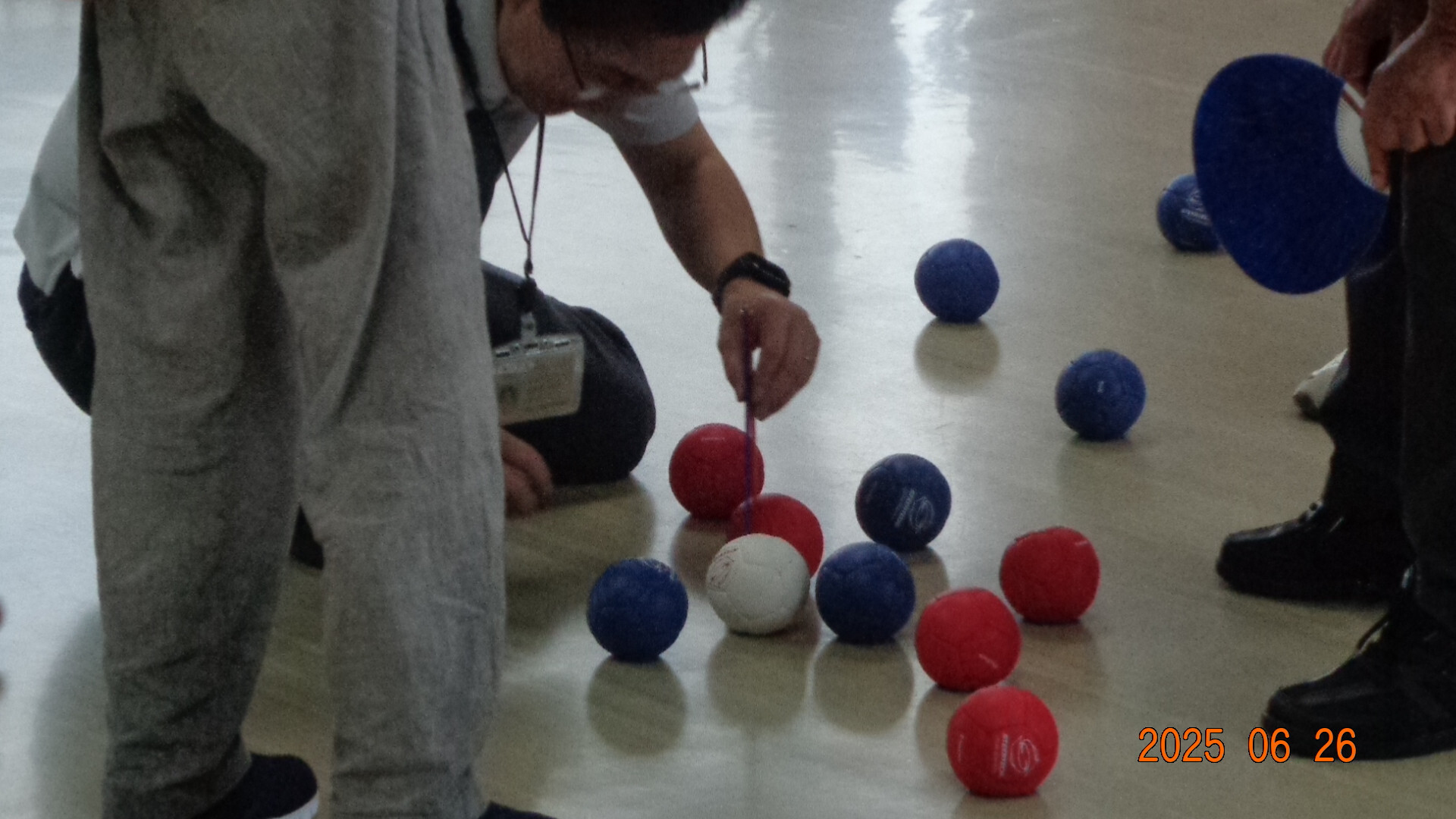 白のボールとの近さが目視では判断できない時は、コンパスで測定します。