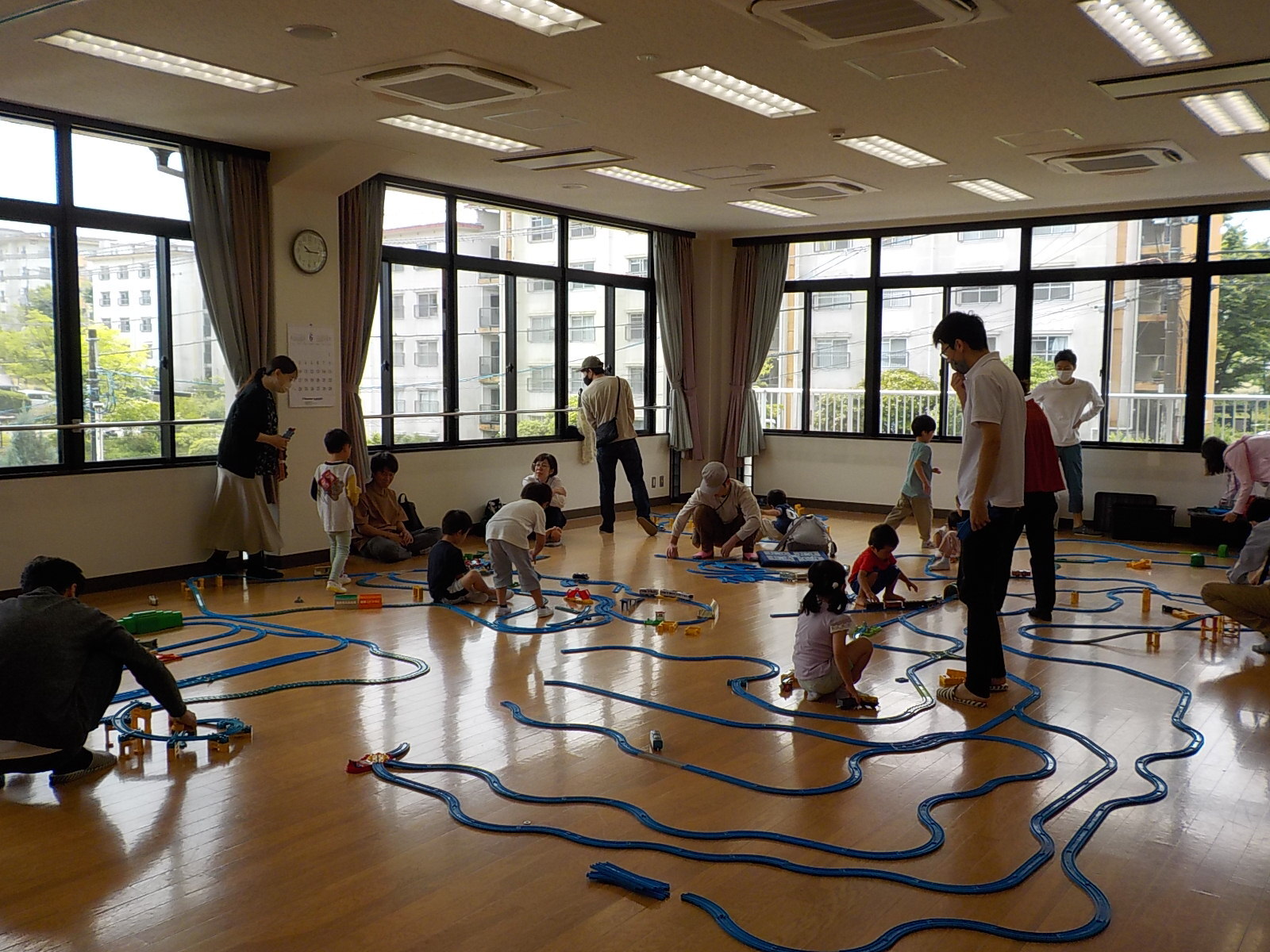 広いお部屋をプラレールでいっぱいにして、みんなで楽しくプラレールであそぼう!