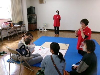 なかよしクラブでは、さまざまなリズム遊びや手遊び、お子さんと一緒に楽しめる簡単な工作や絵本の読み聞かせをしています。